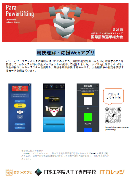 ✓1/15 日本工学院八王子専門学校ITカレッジによる「競技理解・応援」アプリが公開されました。
