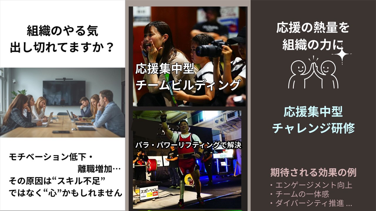 パラ・パワーリフティングの「応援が集中する」特性で解決します。