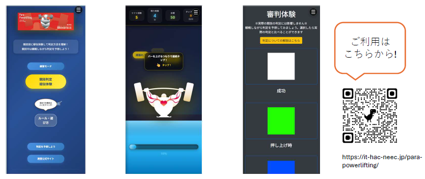 パラ・パワーリフティングの観戦がはじめての人でも、競技や判定を楽しみながら理解することを目指して、AIシステム科の学生プロジェクトが検討して制作しました。